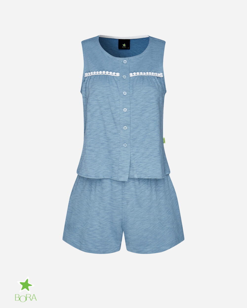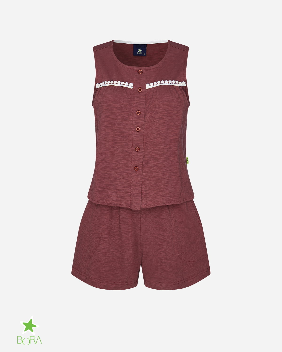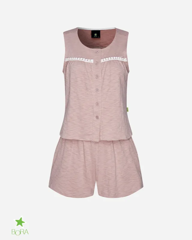 Mang lại cảm giác thư giãn tuyệt đối sau ngày dài với Set Đồ Bộ Nữ Pink Pastel. Thiết kế chinh phục phái đẹp bởi tông màu Hồng Ruốc (Dusty Pink) nhẹ nhàng, tôn da và cực kỳ nịnh mắt. Điểm nhấn đắt giá nằm ở dải ren trắng (White Lace Trim) chạy ngang ngực, kết hợp cùng hàng cúc cài dọc thân áo, tạo nên vẻ đẹp vừa cổ điển, vừa ngây thơ, đáng yêu.